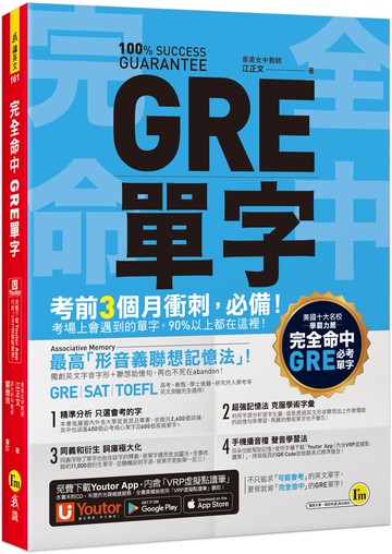 完全命中GRE單字:獨創「形音義聯想記憶法」,輕鬆記住2,600個英文單字!(免費附贈「Youtor App」內含VRP虛擬點讀筆)