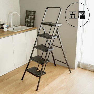 (特價) YOUFONE 扶手五步梯加厚碳鋼折疊梯/人字梯 2色 - 黑色