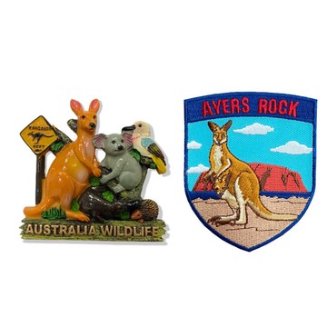 A-ONE 匯旺 澳大利亞袋鼠無尾熊冰箱磁貼 + 烏盧魯 艾爾斯岩 袋鼠臂章 2件組 7.5 x 6cm 多色
