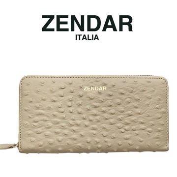 ZENDAR 頂級小羊皮凱莉系列鴕鳥紋拉鍊長夾 米灰 全新專櫃展示品(附原廠送禮提袋)_廠商直送