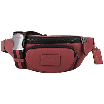 [平輸版] 【COACH】Pace系列黑色C LOGO緹花織布真皮邊斜背/胸背方形腰包 真品平輸