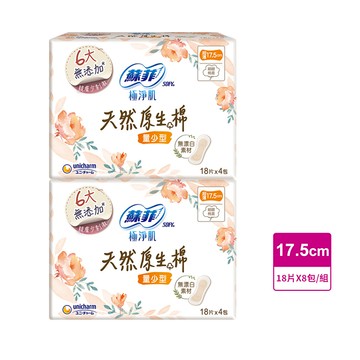 蘇菲 極淨肌 天然原生棉量少型17.5cm (18片x4包/組)