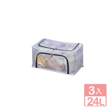 PVC防潮棉被衣服收納箱 不鏽鋼架 60 x 45 x 40cm 透明 1個