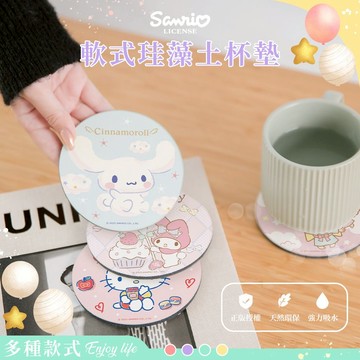 【Sanrio 三麗鷗】軟式珪藻土杯墊-晚安趣 (2入/組) (10*10*0.5cm)_廠商直送