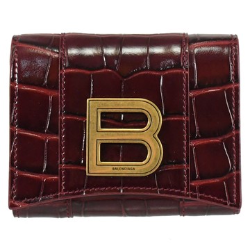 點我下載BALENCIAGA 巴黎世家 634834 Hourglass 鱷魚紋三折零錢短夾.酒紅