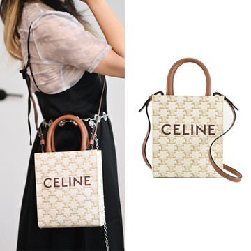 CELINE CABAS IN TRIOMPHE 凱旋門花紋手提兩用托特包.白/咖