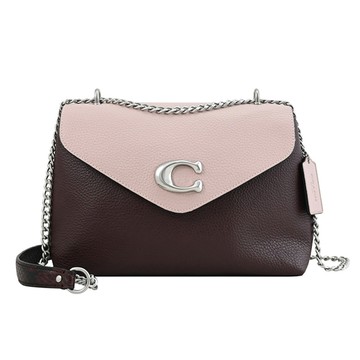 COACH C7952 Tammie 撞色皮革LOGO肩斜鏈包.粉紫