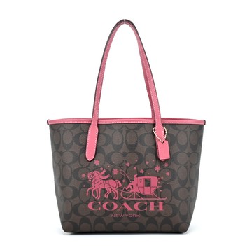 COACH City Tote 馬車印花PVC托特包(小/咖啡紅)_廠商直送