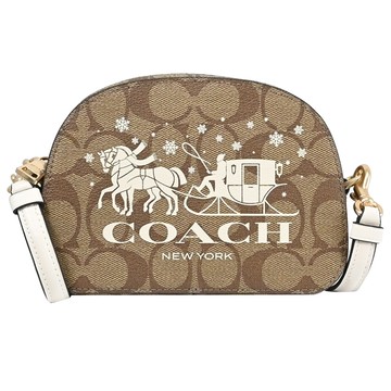 COACH CN708 冬季限定 大馬車LOGO印花迷你斜背包.駝白