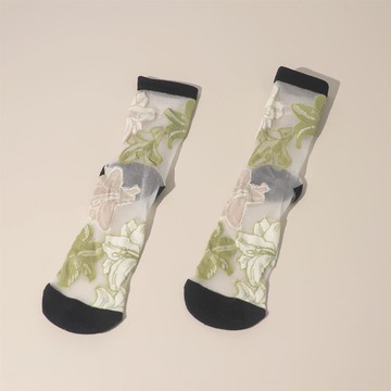 刺繡花卉水晶玻璃襪(黑)