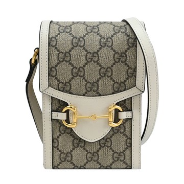 GUCCI 625615 經典Horsebit 1955系列印花斜背手機包.駝白