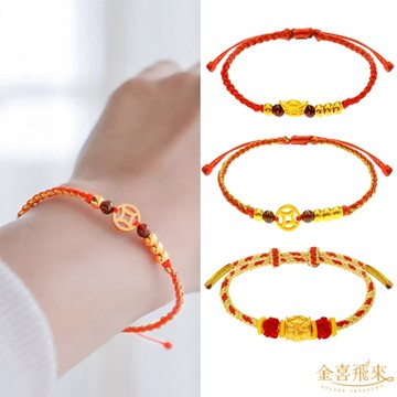 【幸運草金飾】 福漫天黃金/紅寶編繩手鍊