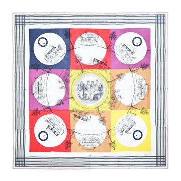 Hermes 愛馬仕 Jeu des Omnibus et Dames Blanches au Tampon 140 cm手工捲邊斜紋真絲大方巾(白/紅/黃)