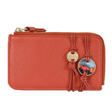 CHLOE MALOU 繩結造型金屬墜飾卡片零錢包.赭紅