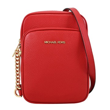 MICHAEL KORS JET SET荔枝紋前口袋直式斜背包-中/紅
