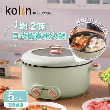 歌林kolin 雙溫控日式鴛鴦電火鍋KHL-UD502E(綠色)_廠商直送