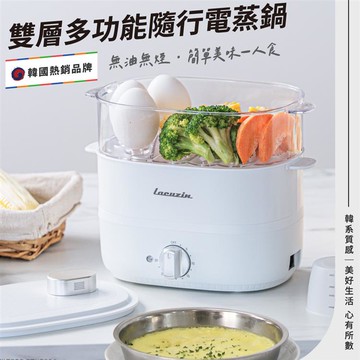Lacuzin 雙層多功能隨行電蒸鍋 - 珍珠白 30分鐘定時器 360度蒸汽循環 LCZ060WT 1個