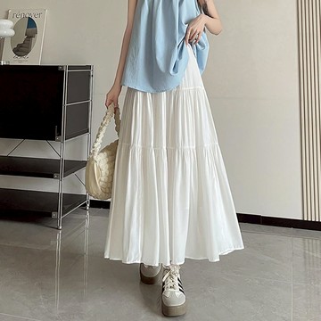 日單原單2023夏新日系風設計感小眾寬松褶皺蛋糕裙百搭大擺裙傘裙