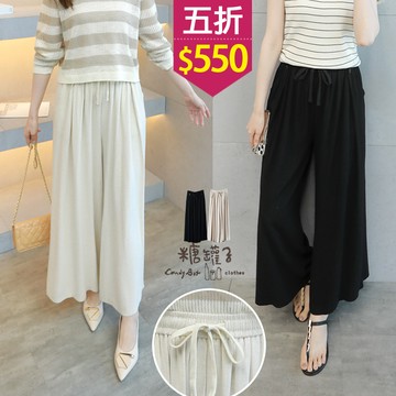 ★五折價$550★糖罐子【KK8662】抽繩縮腰裝飾釦口袋素面棉麻寬褲→現貨
