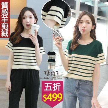 現貨★五折價$499★糖罐子【E64046】造型條紋圓領短袖針織上衣→現貨