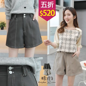 ★五折價$520★糖罐子【KK8721】後縮腰雙釦口袋短褲→現貨