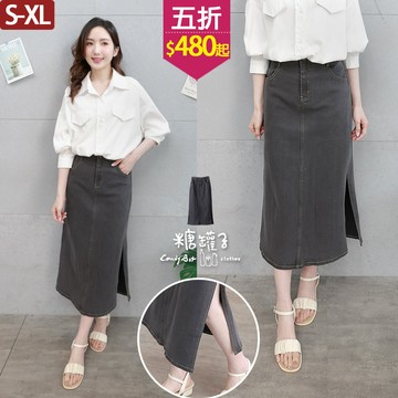 ★五折價$480起★糖罐子【SS2209】單釦腰頭配色車線口袋側開岔長裙→現貨(S-XL)