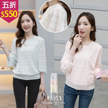 ★五折價$550★糖罐子【E65139】拼接蕾絲圓領針織上衣→現貨