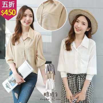 純棉七分泡泡袖上衣