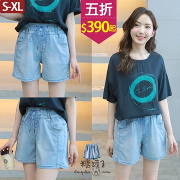 ★五折價$390起★糖罐子【KK8599】抽繩縮腰車線口袋牛仔短褲→現貨(S-XL)