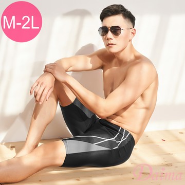 莫妮娜 台灣製 大男 幾何黑海灘泳褲 -M
