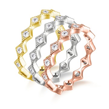 I.Dear飾品-正白K-中意你-曲線晶鑽造型情侶可調節開口戒指GA25