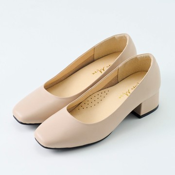 Ann’S每日優雅-小羊皮圓頭粗跟全真皮包鞋5cm-白