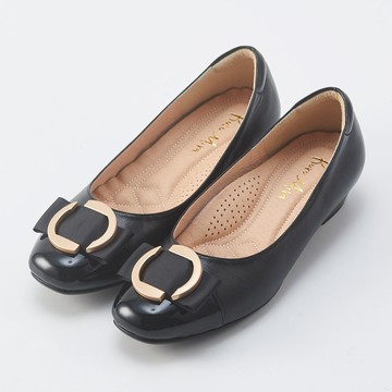 AS 簡約時尚純色方釦全真皮尖頭低跟鞋-銀