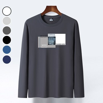 霧霾藍ins風250g全棉重磅純棉圓領長袖T恤男女內搭打底純色T潮