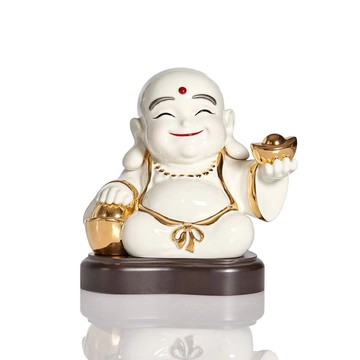 乾唐軒活瓷 | 彌勒佛擺飾 / 中 / 白彩金 (含木座)