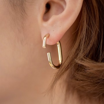 稜角圈・純銀耳環
