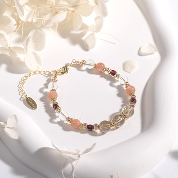 慵來妝 / 櫻花瑪瑙 摩根石 綠柱石 月光石 水晶手鍊