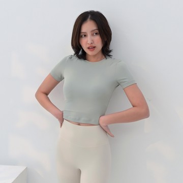 加購優惠(S) sweet修身短版抓皺白色短袖上衣