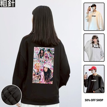 aespa Karina Giselle Winter Ningning繽紛粉色Y2K 粗針純棉落肩大學TEE 台灣獨家韓團T