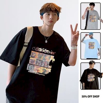 日系cityboy短袖t恤男夏季潮牌小領口男裝上衣百搭寬松休閑體恤衫