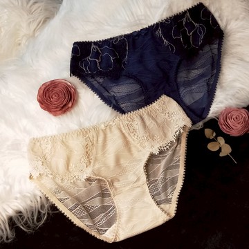 思薇爾 撩波巴黎之春系列M-XXL全蕾絲中腰三角女內褲(鈷藍色)