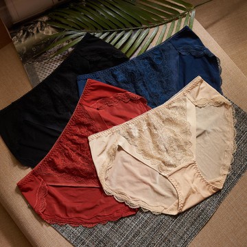 女式全蕾絲純棉底檔三角內褲涼感性感包臀大碼透氣夏季透明火辣褲