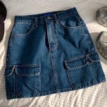 設計感辣妹時尚百搭高腰顯瘦雙口袋牛仔半身裙短裙包臀裙女夏季