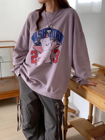 復古寬鬆刺繡字母長帽T