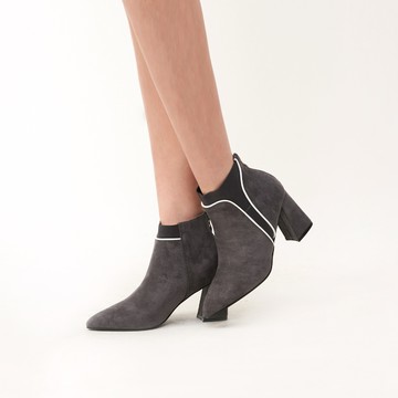 BYHUE 極簡日常純色羊麂皮軟芯高跟短靴-柔霧黑