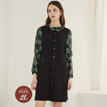 ILEY伊蕾 復古學院風格紋蕾絲邊排釦修身洋裝(黑色;M-2L)1223017026