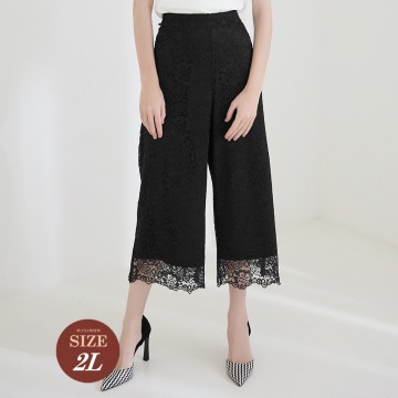 ILEY伊蕾 高貴輕奢蕾絲造型鬆緊直筒寬褲(黑色;M-2L)1223016748