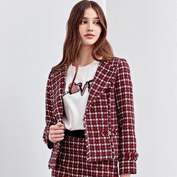 ILEY伊蕾 高級小香織紋翻領短版西裝外套(紅色;M-XL)1224064617