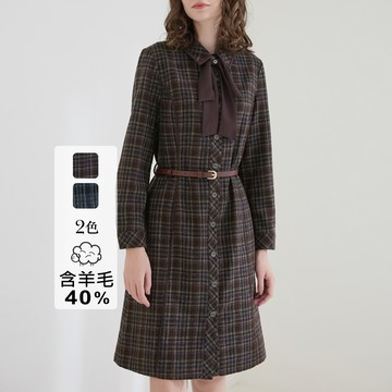 【NaSuBi Vintage】綁帶綴飾日本製薄毛古著洋裝