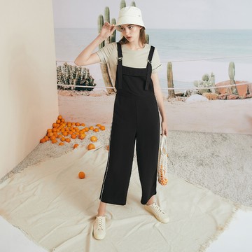 OUWEY歐薇 簡約休閒條紋造型質感雪紡吊帶褲(黑)3222327615